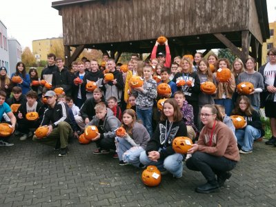 Dýně pro Světélkovou stezku chystali všichni žáci z 2. stuoně. Při procházení stezky mohl každý vybrat tu svítící dýni, která se mu zdála ve tmě nejkrásnější.