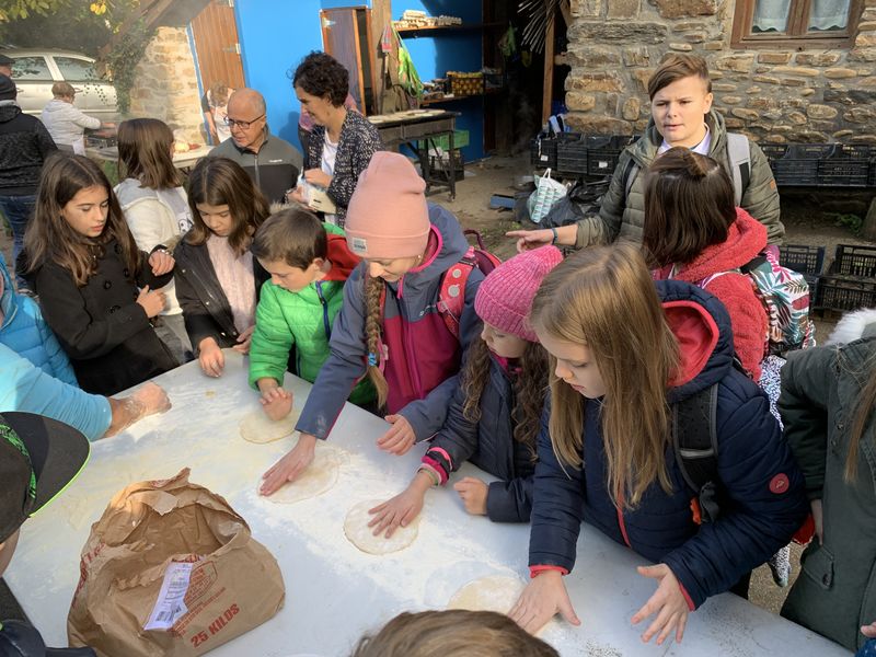 Po první noci v rodinách jsme v devět hodin přijeli autobusem do školy. Tam nám řekli, ať jdeme do tělocvičny. Pak jsme se přivítali s dětmi, řekli si, jak se jmenujeme, odkud jsme a kdo, u koho bydlí. Potom nás přivítali i učitelé z Baskicka.