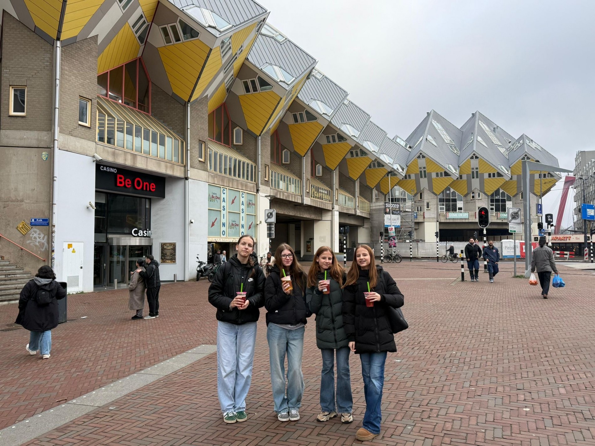 V úterý po škole nás vzali na výlet do Rotterdamu a ukázali nám město a zajímavosti v něm. Hodně se mi líbily krychlové nakloněné domky, do kterých jsme se mohli jít i podívat. Další výlet, který jsme spolu podnikli byl na pláž. Svítilo sluníčko, moře bylo dost studené a foukal vítr, pláž byla písečná a byla plná malých různých mušlí, které jsme si s Eliškou nasbíraly a přivezly domů. Škola většinou začínala kolem deváté hodiny, někdy i později. Budova školy byla obrovská v porovnání s naší malou školou v Lípě.