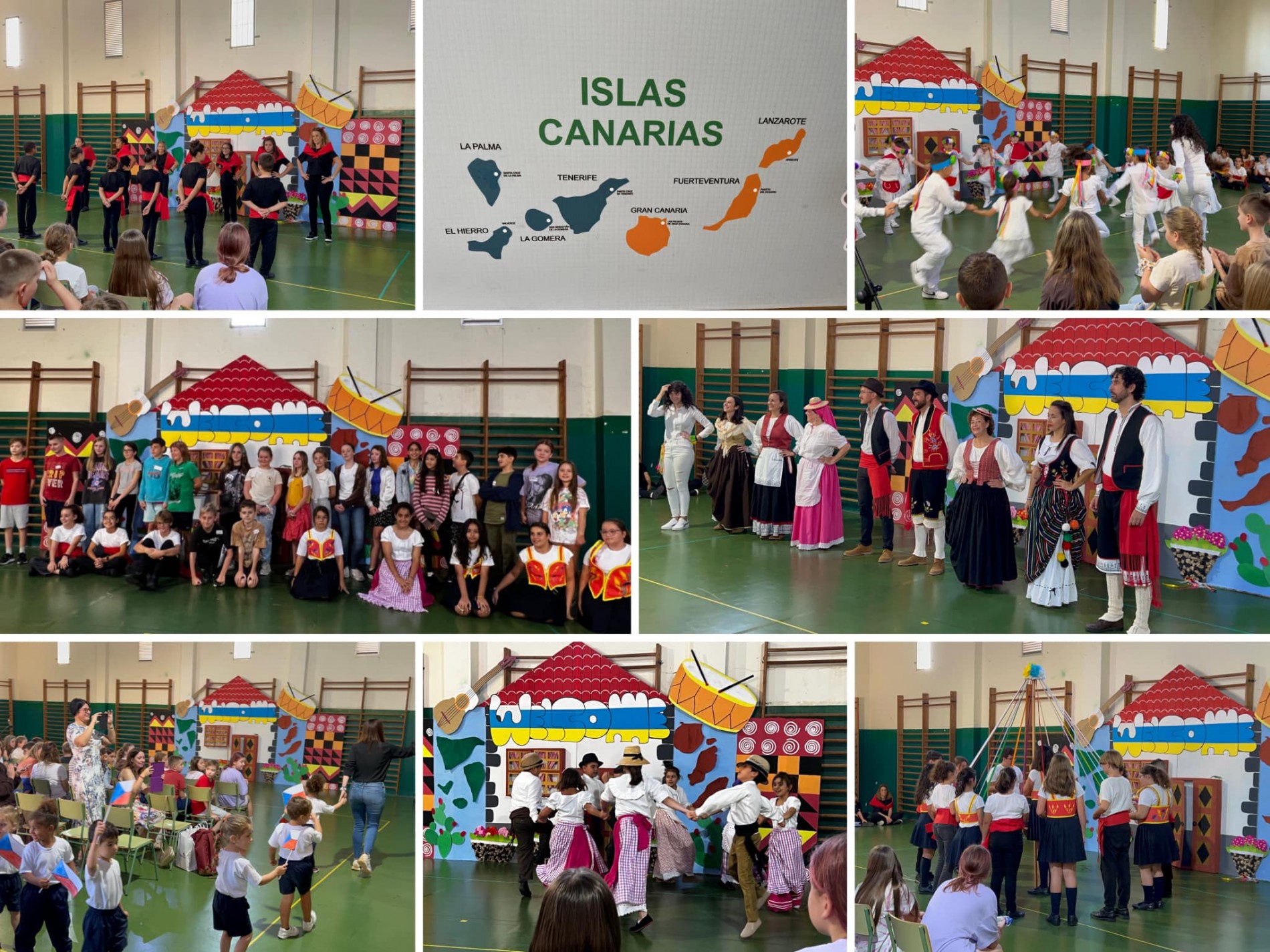 První den ve škole byl úžasný. Nejprve jsme se všichni seznámili a dostali jsme jmenovky. Potom jsme se přesunuli do tělocvičny, kde jsme zažili nádherné přivítání. Děti ze školky měly připravené vlaječky jednotlivých států a přivítaly nás hymnou našich států. Každá třída si připravila tradiční tanec jednoho z Kanárských ostrovů. Nádherné byly nejenom tance a hudba, ale i kulisy a kroje. Na závěr se nám představili učitelé, kteří také měli tradiční kroje.