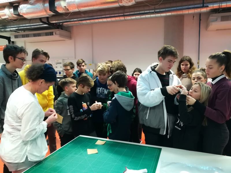 Po krátkém představení výzkumného ústavu žáci navštívili jednotlivá pracoviště a laboratoře, kde se dozvěděli mnoho cenných informací o nanomateriálech, jejich výrobě a jejich praktickém využití. Jen u sdělených informací ovšem nezůstalo. Žáci mohli nanovlákna vidět na vlastní oči. K jejich pozorování je potřeba elektronový mikroskop. A ten byl v jedné laboratoři k tomuto účelu připraven. V jiné laboratoři si žáci mohli dokonce nanovlákna i vyrobit:).
