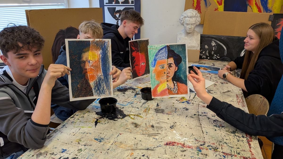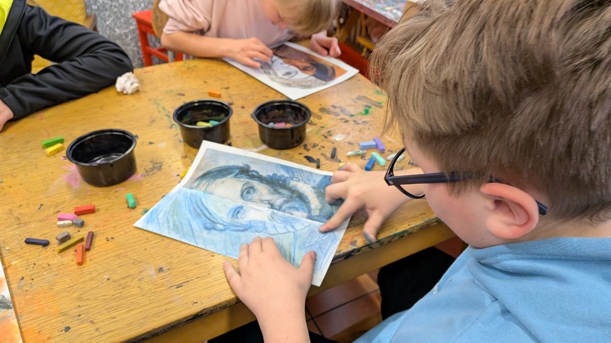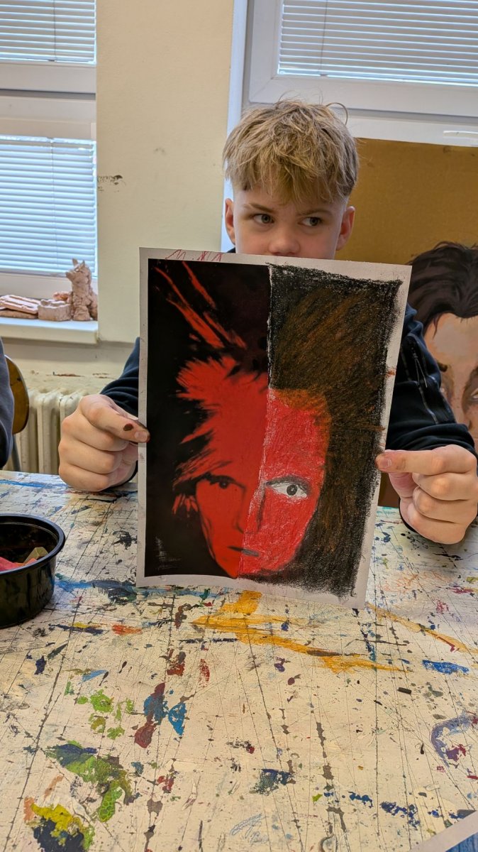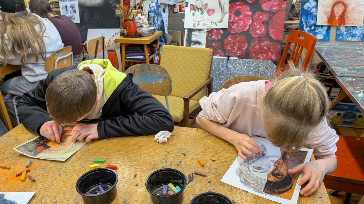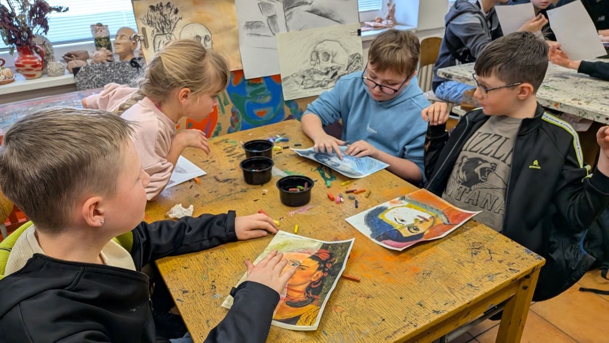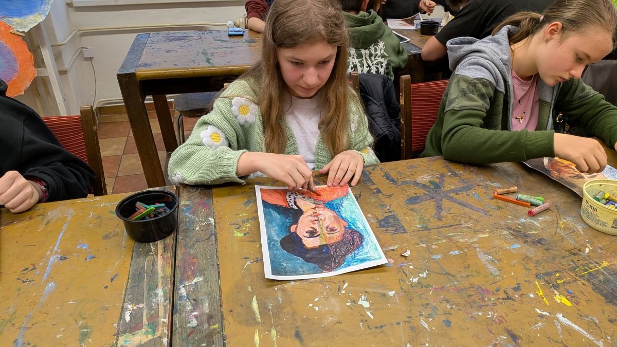 Po ukončení koncertu žáci ještě navštívili výtvarnou dílnu v ateliéru paní učitelky Nešporové. Každý se pokusil „restaurovat“ portrét některého ze známých mistrů.