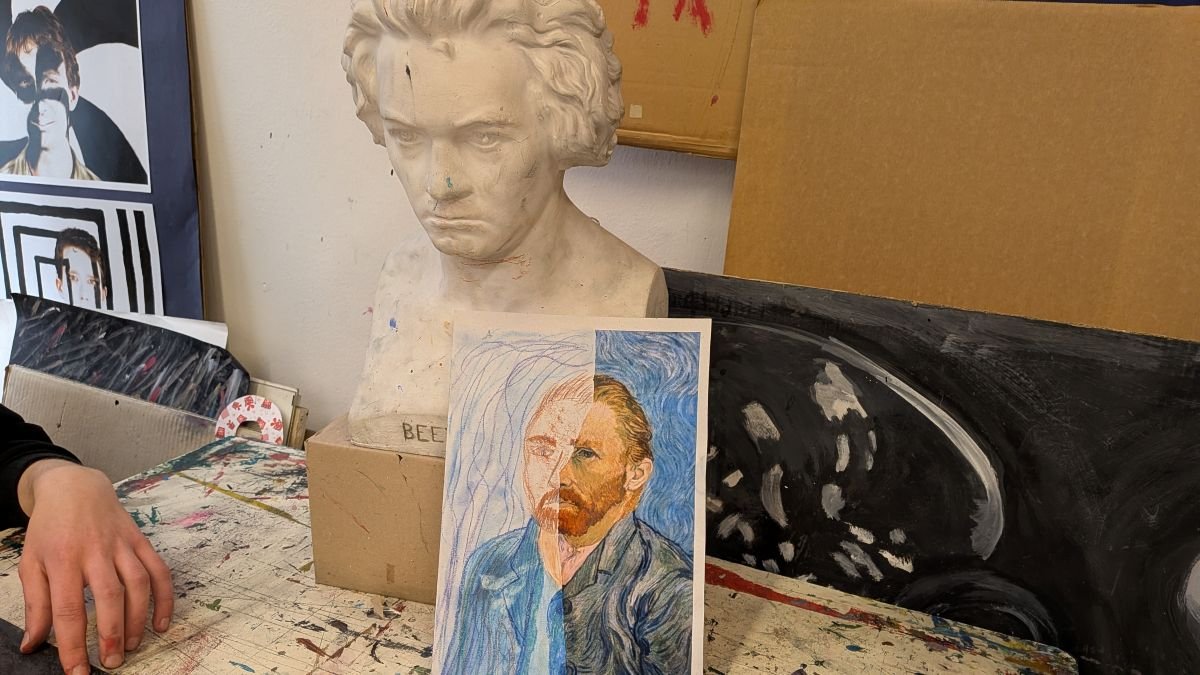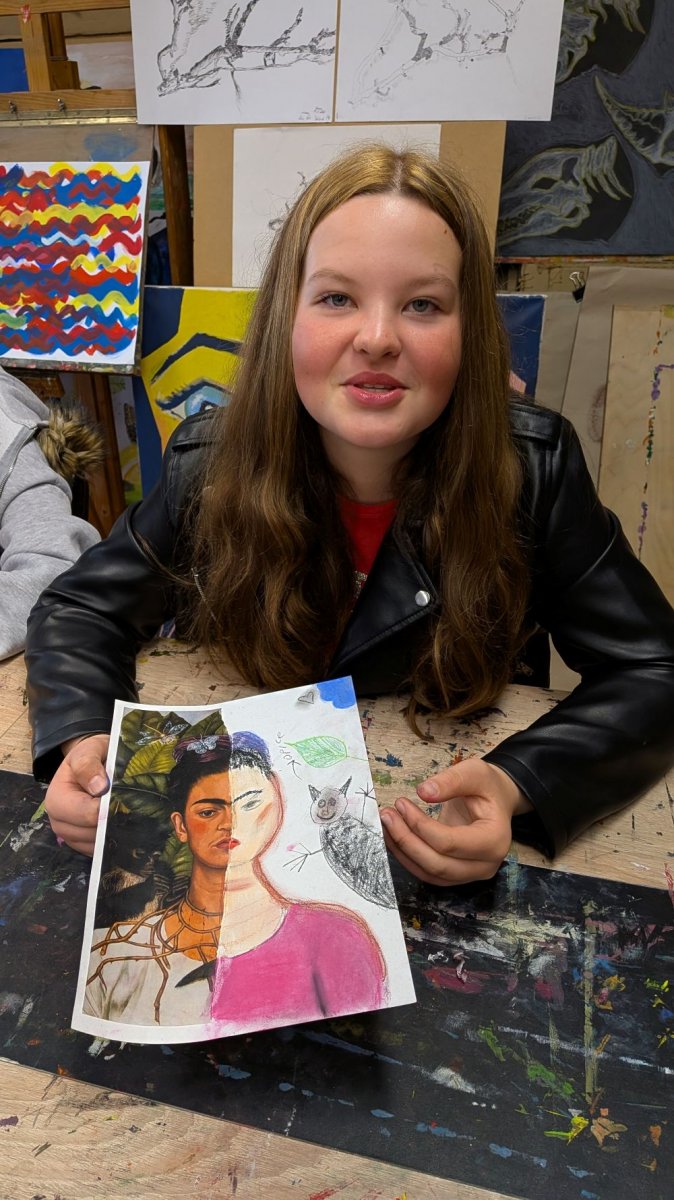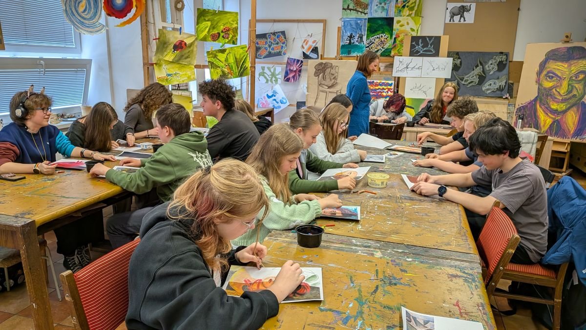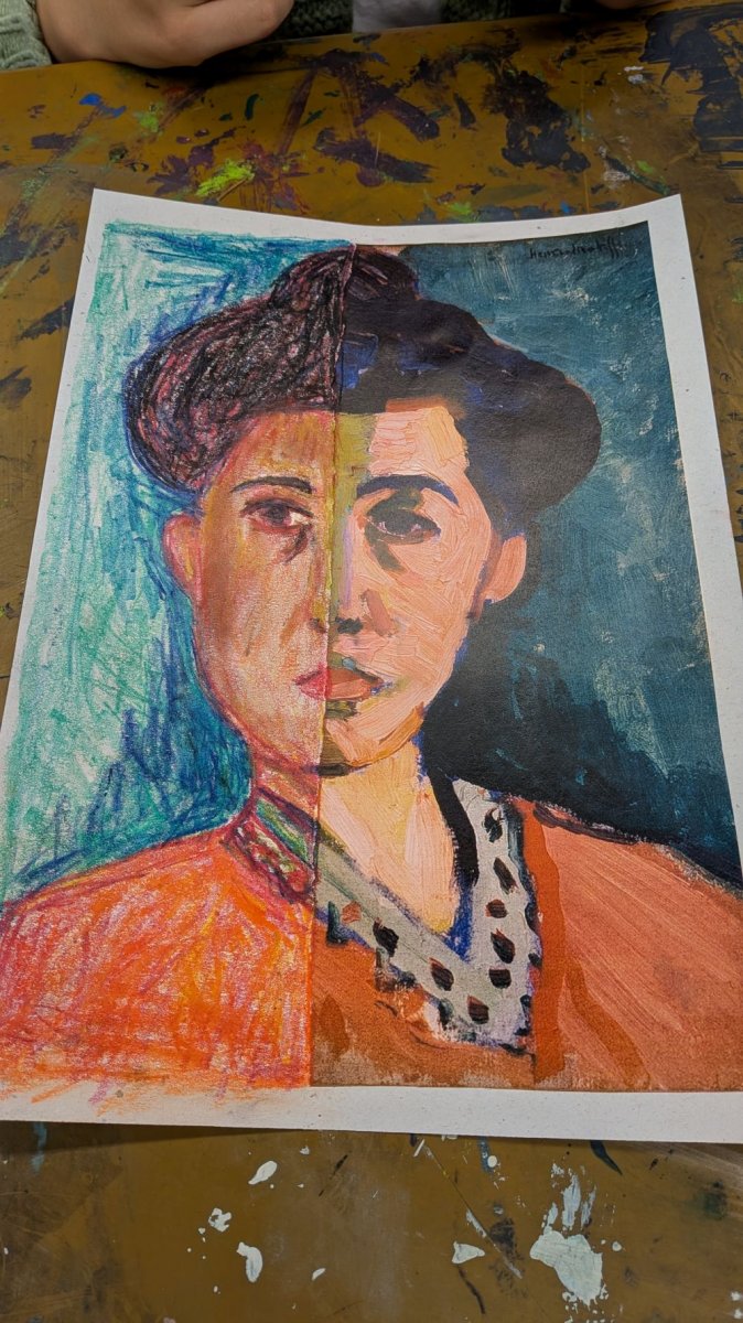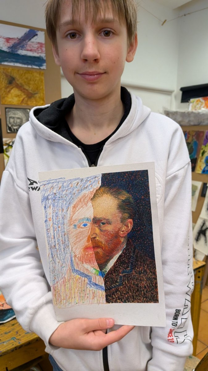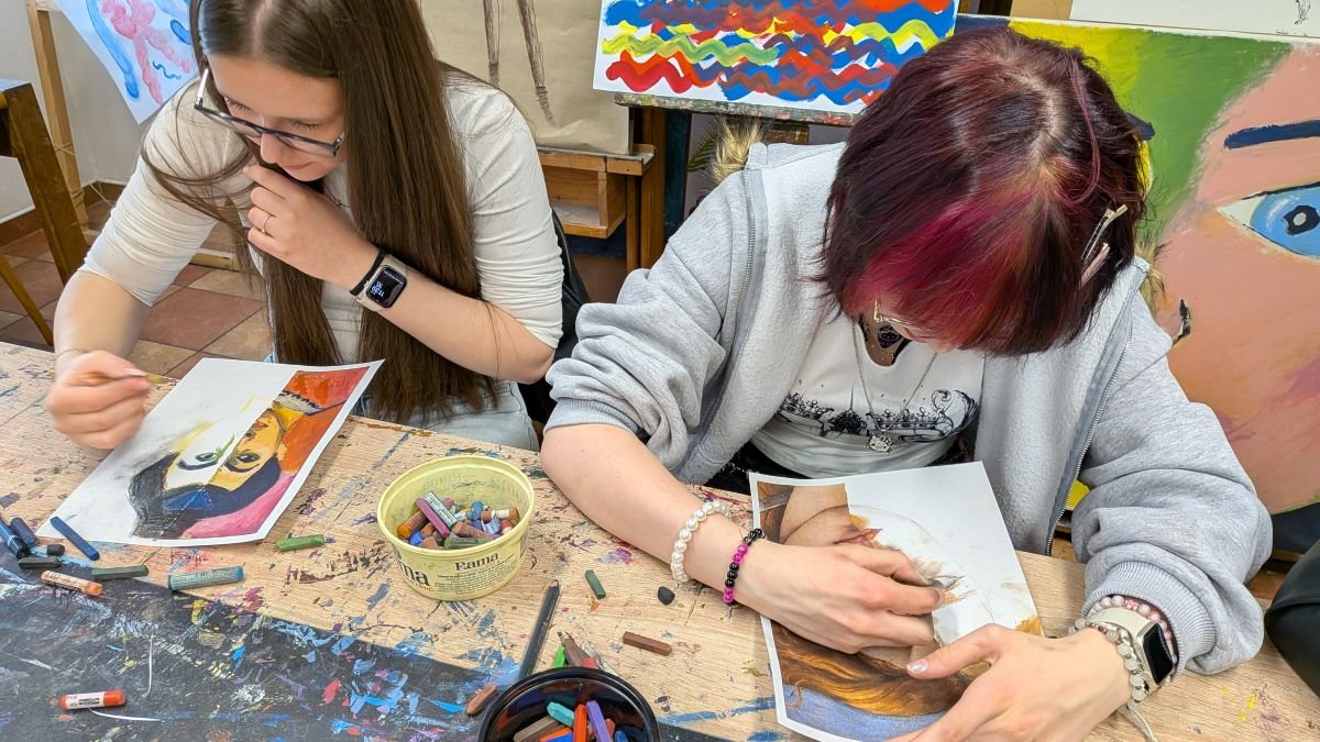 Po ukončení koncertu žáci ještě navštívili výtvarnou dílnu v ateliéru paní učitelky Nešporové. Každý se pokusil „restaurovat“ portrét některého ze známých mistrů.