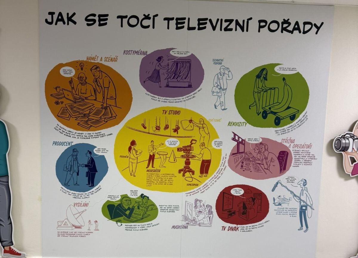 Žáci osmého a devátého ročníku navštívili Českou televizi, aby si prohloubili své znalosti v oblasti mediální gramotnosti. Během exkurze se dozvěděli, jaká různá povolání se na tvorbě televizního vysílání podílejí a co všechno je potřeba k jeho realizaci. Seznámili se také s tím, jakým způsobem si Česká televize zajišťuje kulisy a kostýmy, které si ve velké míře vytváří vlastními silami.