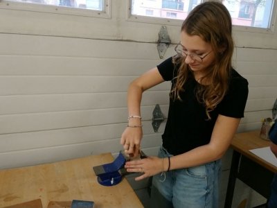 V dílně si pod vedením paní učitelky Kadlečkové vyrobili dřevěnou kostku, kterou mohou využít třeba při hraní deskových her.